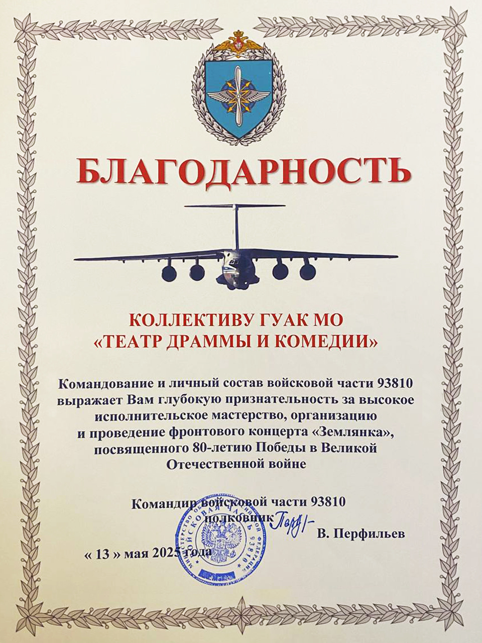 Благодарность подписана командиром войсковой части полковником В. Перфильевым. Для нас это не просто документ — это знак уважения и признания важности нашей работы для военнослужащих.