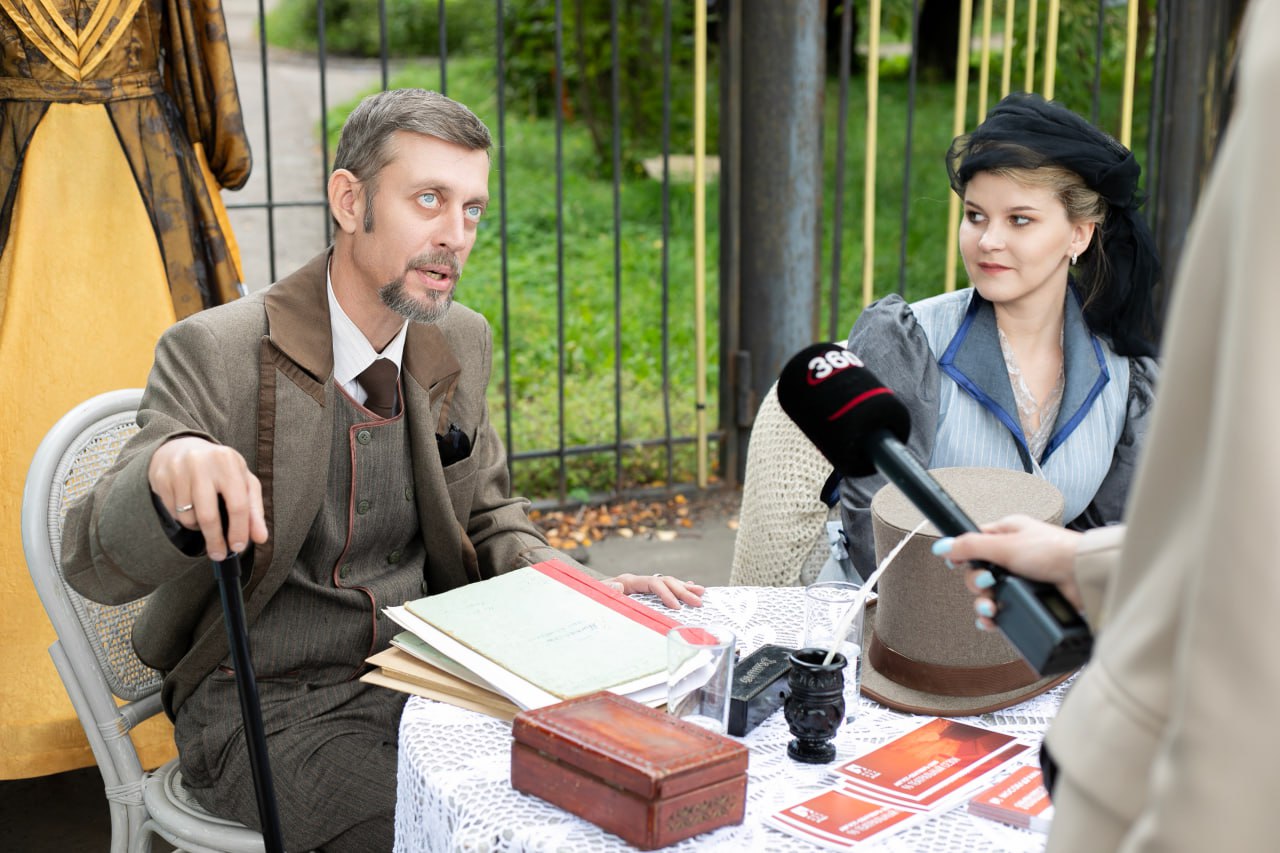 У театра была своя площадка: заслуженная артистка МО Марианна Обухова рассказала зрителям о театральных костюмах и их истории, а артисты Валентин Терехов и Ирина Громцева дали интервью телеканалу 360.